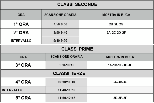I docenti in servizio accompagneranno le classi secondo quanto indicato nella tabella seguente.